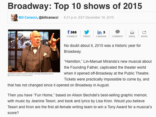 After the Chicago triumph, Churchill opened a successful run off-Broadway, at the Shubert owned New World Stages beginning in February. The originally limited run was immediately extended an additional eight weeks due to ticket demand. It wasn’t long till it was extended yet again till mid July. After garnering favorable reviews and attention from publishers, licensing groups and touring agencies, Churchill closed its New York production on July 12.