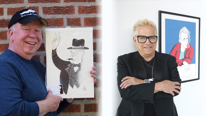 Renowned caracaturist Ken Fallin honors Ronald Keaton with a portrait to hang on New World Stages Wall of Fame.